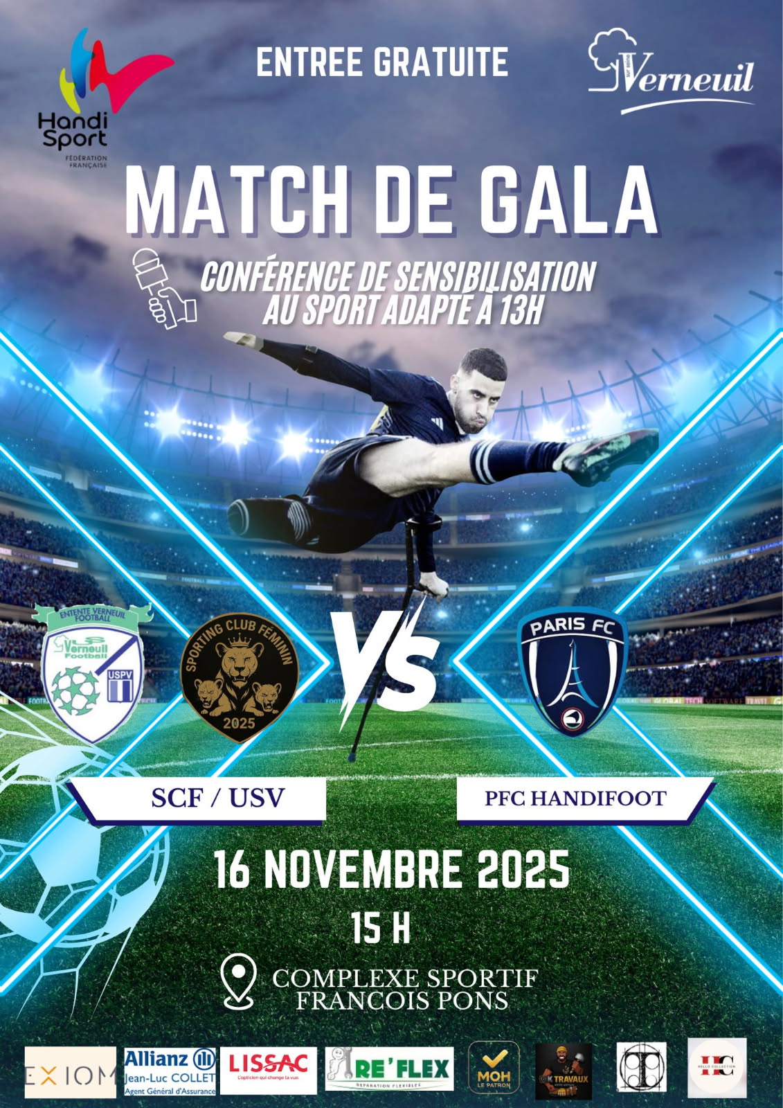 Légende : un match permettant de sensibiliser le public aux conditions d'handicap. Verneuil-sur-Seine, labelisée ville…