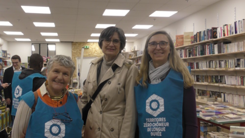 Légende: Marianne Cantau et Ariane Neveux, membres du projet TZCLD, encadrent Mme Ghislaine Senée, Sénatrice des…